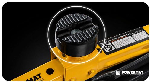 Gumowe podkładki z nacięciami chronią progi i elementy podwozia przed uszkodzeniem podczas podnoszenia auta. Dzięki antypoślizgowej powierzchni podnośnik lepiej trzyma punkt podparcia, co zwiększa stabilność pracy. To szczególnie ważne przy większym obciążeniu, gdzie liczy się pewne osadzenie. Zyskujesz bezpieczeństwo i brak ryzyka zarysowań lakieru lub wgnieceń.